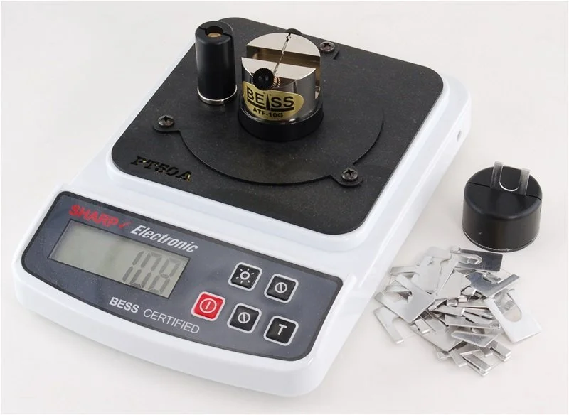BESS Certified Sharp Tester- We use this in addition to other tests to be sure we return to you an incredibly sharp knife. The tester mesures the weight required to cut a piece of monofilament line. The lower the test number the better. A dull knife will typically test 500g-1500g after sharpening 90g-175g depending on blade thickness.
